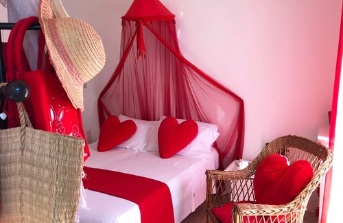 Furnished with various shades of red, blue and white, it is composed of a double bedroom with small balcony, a living room with kitchenette, double sofa bed and balcony, a bathroom with shower, a fantastic panoramic terrace with barbecue.
