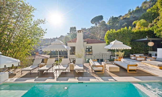 This stunning 4-bedroom, 3-bathroom villa in the Hollywood Hills offers professionally designed interiors with exquisite attention to detail. Located near the city’s top shopping and dining destinations, it boasts a luxurious backyard with a pool, hot tub, custom BBQ, outdoor seating, and a firepit, creating a hotel-style oasis. Perfect for both relaxation and entertaining, this villa blends modern comfort with sophisticated design, offering an unparalleled living experience in one of LA's most sought-after neighborhoods.