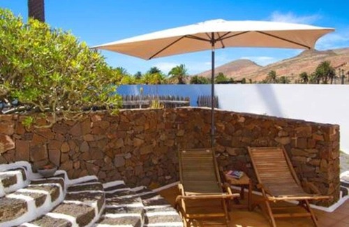 Casa Crisana is a villa that has a very typical Canarian design to it. It is located in the peaceful village of Haria which is also called the valley of the thousand palms. Each bedroom of the house is equipped with air conditioning.Outside through the back kitchen door there is a private garden where you could enjoy most of your meals, which you can prepare in the kitchen or on the stone barbecue that is available for you. Under the palm trees in the garden is the perfect place to relax and enjoy some sunbathing or a good book.On the second floor there is an indoor patio with a panoramic view looking over at the volcanoes of Lanzarote.