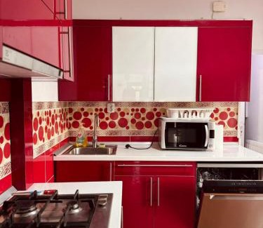 Casa cu Cires Breaza offers accommodations in Podu Vadului, 18 miles from Stirbey Castle and 19 miles from Peles Castle. The property is around 20 miles from George Enescu Memorial House, 23 miles from Slanic Salt Mine, and 19 miles from Dimitrie Ghica Park. The villa features free Wifi and free private parking. Featuring a terrace and garden views, the villa includes 5 bedrooms, a living room, flat-screen TV, an equipped kitchen, and 5 bathrooms with an a bath or shower. For added privacy, the accommodation features a private entrance. The Sinaia Monastery is 19 miles from the villa, while Pelisor Castle is 19 miles from the property. Bucharest Henri Coandă International Airport is 50 miles away.