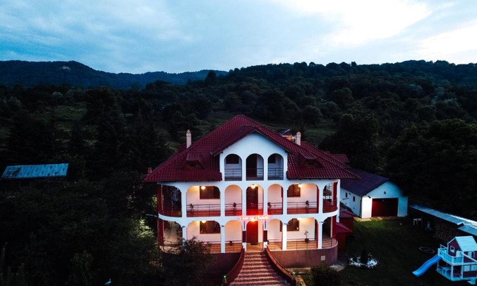 Featuring a garden, Casa cu Elefanți provides accommodations in Corbşori. This property offers access to a balcony, free private parking, and free Wifi. Each room includes a flat-screen TV with cable channels. Opening to a terrace with mountain or garden views, all units at the guest house have a fully equipped kitchen with a dishwasher and an oven. There's a private bathroom with bath in some units, along with bathrobes, slippers, and free toiletries. At the guest house, each unit includes bed linen and towels. There is a coffee shop and lounge. For guests with children, the guest house features outdoor play equipment. The guest house also includes outdoor fireplace and a picnic area for a day outdoors. Vidraru Dam is 27 miles from Casa cu Elefanți. Sibiu International Airport is 84 miles from the property.