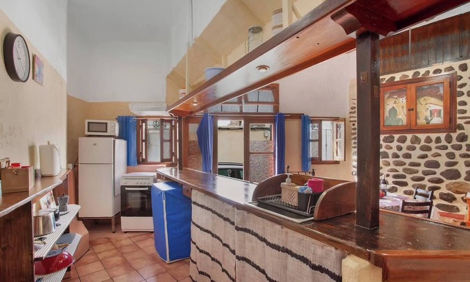 It is a typical Canarian house with one room with a wardrobe and a living room with a kitchen and dining room. It has a bathroom with a separate shower. It does not have air conditioning but it has ceiling fans and is very cool. It is ideal for teleworking and for couples who want to explore the island with hiking, cycling or beach routes. It is a few minutes from the airport and very close to beautiful beaches such as Ojos de Garza or El Burrero.