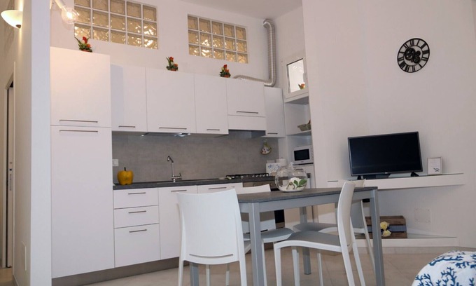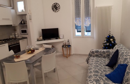 apartment in the center of Finale Ligure located on the first floor. Newly renovated and furnished with modern style furniture, private entrance, kitchen, living room with a double sofa bed, 1 double bedroom, 1 bedroom with 2 single beds 1 bathroom with large shower, equipped appliances (washing machine, dishwasher, microwave, oven, coffee) linen for beds, towels, tablecloth, tea towels.