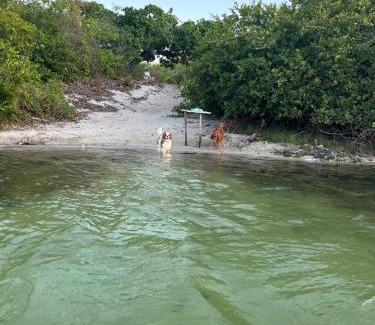 Casa da Lagoa - Barrinha enjoys a location in Carrapateira, 13 miles from Jericoacoara Lighthouse and 15 miles from Nossa Senhora de Fatima Chapel. 13 miles from Pedra Furada and 14 miles from Dune Por do Sol, the property features a garden and barbecue facilities. The guest house provides rooms with air conditioning, free private parking, and free Wifi. At the guest house, each unit includes a wardrobe. A terrace with an outdoor dining area and lake views is offered in select units. At the guest house, the units are equipped with a desk and a private bathroom. Ariston Pessoa Regional Airport is 7.5 miles away.