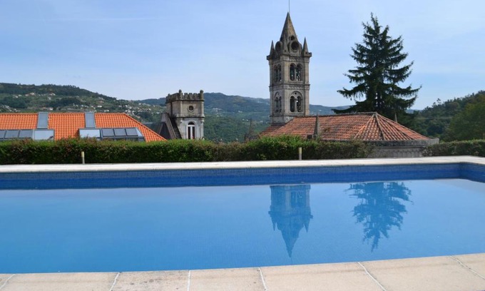 Casa da Quinta da Calçada in Cinfães provides accommodations with a tennis court, barbecue facilities, and a shared lounge. This farm stay offers free private parking, a shared kitchen, and free Wifi. In their free time, guests at the farm stay can opt for a relaxing dip in the outdoor swimming pool, a drink at the bar, or a stroll in the garden. Offering a terrace or patio with views of the mountain and pool, the units feature air conditioning, a seating area, cable TV, and kitchen. At the farm stay, the units come with a private bathroom with bathrobes and free toiletries. The farm stay has a picnic area where you can spend the day outdoors. Douro Museum is 22 miles from the farm stay, while Our Lady of Remedies Sanctuary is 23 miles away.