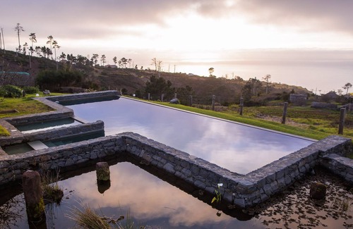 Among the Levadas that run throughout the space, there is a large swimming pool with solarium and a space with farm animals that guests can interact with.