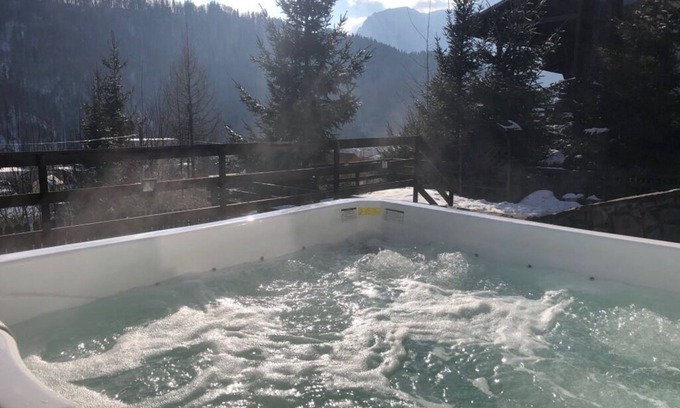 The main living/dining space boasts the most amazing views of the valley which is home to 50 brown bears. The open-fire offers a cosy warm feel irrespective of season, with doors leading onto a large wooden terrace to soak up the sun or scenery.