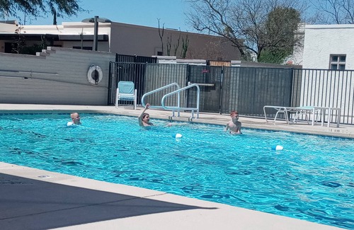 Welcome to Grandma's house! Her comfortable home hosts two bedrooms with two bathrooms, a modestly furnished living room, and a well stocked kitchen. The home is located within walking distance of shops, pools, and a social center. The private courtyard sports amazing views of the Santa Rita Mountains.