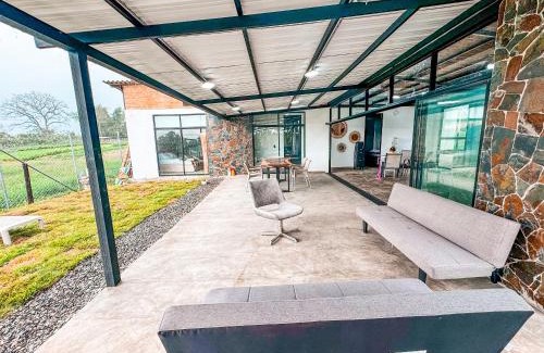 Casa de campo Villa Abuelo offers accommodations in Montenegro, 30 miles from Ukumari Zoo and 3.5 miles from National Coffee Park. This property offers a private pool, free Wifi, and free private parking. Pereira's Olympic Village is 29 miles from the villa and Expofuturo Convention Center is 29 miles away. The spacious villa is composed of 3 bedrooms, 2 living rooms with dining area, a fully equipped kitchen, and 3 bathrooms. Guests can enjoy a meal on an outdoor dining area while overlooking the garden views. For added privacy, the accommodation features a private entrance. Guests can also relax in the garden. Panaca is 13 miles from the villa, while Hernan Ramirez Villegas Stadium is 28 miles away. El Edén International Airport is 12 miles from the property.