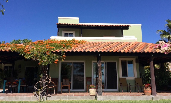 This lovely 3 bedroom hacienda style home is a 7 minute walk to Zipper's Surf Beach, Old Man's Beach and the Rock Beach. Our hacienda is fully remodeled with new appliances, WIFI, 1000 covered outdoor porch and a phenomenal view of the Sea of Cortez. Some of the largest potted plants you've ever seen are flourishing in the San Jose climate. We also have 3 mature mango trees in our back yard that produce a few hundred ripe mangos (June-Aug).