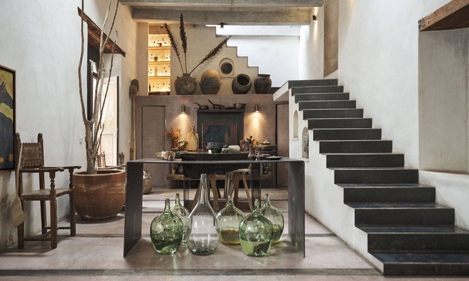 This historical property offers an artistic retreat with furnishings made from the water and soil of Oaxaca’s sacred valleys. The centerpiece is a hidden room crafted entirely from raw earth, water, and recycled agave fibers from the mezcal distillation process.