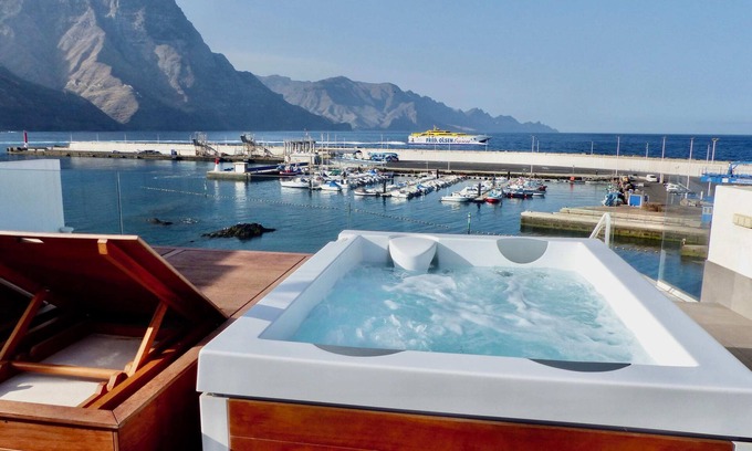Have fun with the whole family at this stylish place. Escape to paradise at our breathtaking 3-storey oceanfront house in Agaete. Immerse yourself in luxury with a designer interior that will leave you in awe. Wake up to the soothing sound of the waves and indulge in mesmerising sea views from every bedroom. Picture yourself unwinding in the hot tub on the rooftop terrace, surrounded by the beauty of the coast.