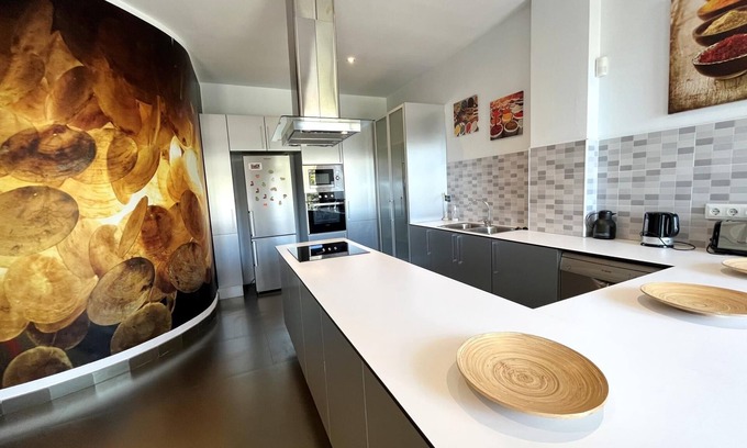 The spacious, light-filled living spaces offer a welcoming atmosphere for gatherings and moments of relaxation. Maresme is a region known for its kilometers of sandy beaches and its charming coastal towns such as Calella, with its lighthouse, and Sant Pol de Mar, whose beaches are adorned with small fishing boats.