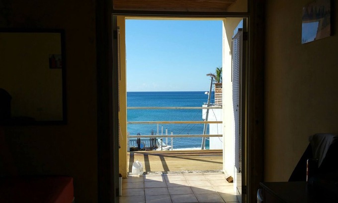 A 1 bedrooms apartment with 2 full size beds, located 50' from the beach. This apartment has street access and a deck that overlooks the beach, coast and the sea. We are located downtown and within walking distance to bars, restaurants, bakeries and groceries stores.