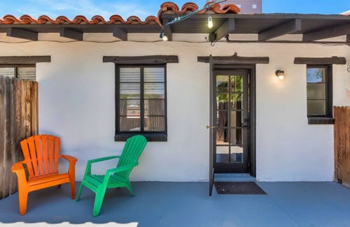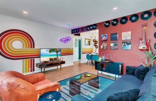 Welcome to Casa de Rock! Our 1-bed, 1-bath immerses you in classic rock n` roll vibes. Located in the heart of Tucson just minutes from major hospitals, The University of Arizona, and downtown, perfect for Tucson Gem Show enthusiasts. With a queen-size bed & a comfy queen-size couch bed, we can host up to 4 guests. Unplug, relax, & journey back in time surrounded by the most iconic rock legends of the 20th century. Welcome to your rockin` retreat!