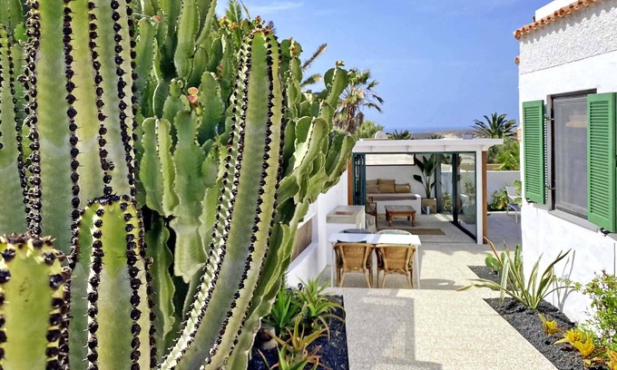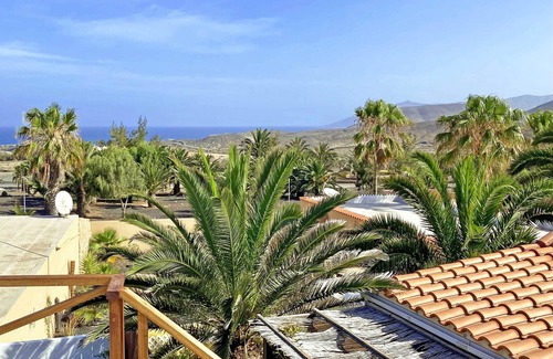 Very luminous and cosy house, located in the south of Fuerteventura, with spectacular view to the sea, the palm groves and the volcanoes.