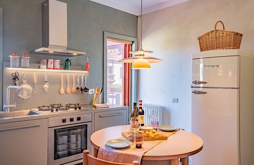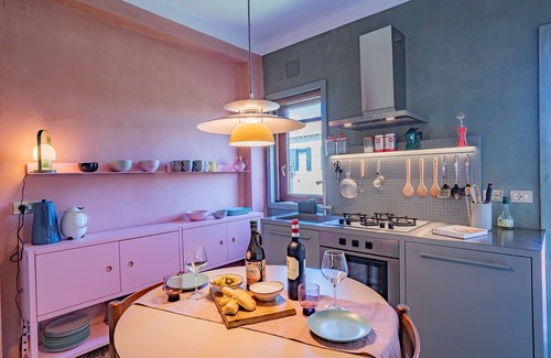 Casa Della Sensa 2 / Terrace with Shared GardenNEW LISTING!In a peaceful pocket of Cannaregio little touched by timeSits a ballet-slipper pink ‘palazzetto’ I like to dream is all mine...Seemingly oblivious to the passing of the years on the sunny ‘Rio Della Sensa’ canal, where Venetian residents like to row and fewer tourist crowds go, rests this ravishing and newly restored dainty palace sleeping 12. Embracing 2 separate uber-stylish apartments (including Casa Della Sensa 2 / Terrace detailed below) and a charming shared walled garden** where you can while away your downtime with latest book (and spritz!) in hand, the entire palazzetto extends over 3 floors and fully embraces its exceptionally chic and refreshingly understated aesthetic. Presented in delicate pastel shades, accommodation is bright and airy in ambiance and utterly sublime in setting. Lavished throughout with discrete high-end fixtures and fittings (think lighting by Isamu Noguchi, chairs by Ronan & Erwan Bouroullec, glassware by Venini and NIC Design bathrooms) and boasting captivating south-facing canal views to the fore, the palazzetto has Wi-Fi and air conditioning as standard and when booked exclusively sleeps 12 in the lap of quiet luxury. Within a gentle stroll of the 15th-century Church of Madonna Dell’ Orto (final resting place of Tintoretto who lived nearby), the historic Jewish Ghetto and the Jewish Museum of Venice, plus a whole host of excellent eateries, bacari and cafes dotting the wide ‘fondamente’ and beyond, including (but not only!) Al Timon (great Steak Fiorentina), the newly opened Strazzaria (fantastic pizzas), Oficina Ormesini (top cicheti), Vino Vero (huge selection of natural wines), not forgetting one of the best-regarded restaurants in all of Venice – Anice Stellato – situated just a few doors down , and the newly launched Da Lorenzo – Al Giardino Segreto gourmet restaurant within the 17th-century Palazzo Rizzo-Patarol (now the NH Collection Grand Hotel Palazzo dei Dogi) offering 2 tasting menus created by Michelin-starred chef Paulo Airaudo, the palazzetto includes apartment Casa Della Sensa 2 / Terrace offering dreamy accommodation as follows: Casa Della Sensa 2 / Terrace (sleeps 4 guests – 2 bedrooms / 2 bathrooms)Situated on the 2nd Floor (reached by stone communal stairs – no lift) and with gorgeous shared furnished garden** and dainty private furnished terrace, a delightful apartment comprising: Ground FloorMain double doors on the sunny ‘fondamenta’ waterfont opening into the building’s majestic communal ‘androne’ hallway in traditional Venetian layout with polished terrazzo flooring, marmorino walls (found throughout), beautiful wooden timbers overhead, and via the ‘androne’s’ arched door with decorative scrolled ironwork, the highlight of the entire palazzetto...Its sublime shared secret walled garden**... a furnished grassy haven of relaxation, well-being and wonderfulness where flowers and climbing foliage gently sway in the lagoon-tinged breezes, a pair of stone putti bid you leave the world beyond behind, and a solitary tree takes centre stage amidst the birdsong and tranquility, while you take your cappuccino (or macchiatone!) in the crisp morning air or relax at dusk beneath the evening sky!Returning indoors, stone communal stairs (no lift) rise to the 2nd Floor, where the apartment’s light and breezy accommodation comprises: The entrance opening directly into a A bright and sunny reception / dining room to the centre boasting gorgeous views over the canal to the fore, furnished in minimalist style with dining suite at one end and open to...A quietly elegant sitting / TV room with a pair of windows overlooking the canal and two sofas dressed in russet linen ideal for lounging at your leisure On the opposite side and also with canal views, a delightful double bedroom in powder blue with windows to the fore, a linen-dressed double bed in coordinated colours and an immaculate en suite bathroom in grey / blue with shower To the rear with views of the garden, a peaceful 2nd double bedroom in cool and calm sea-green with double bed A separate contemporary bathroom with showerAnd completing Casa Della Sensa 2 / Terrace’s accommodation, ‘la ciliegina sulla torta’... the cherry on the cake...A spacious, well-equipped Fantin kitchen / breakfast room in pink and green with glazed doors leading out onto the pretty furnished terrace from which the apartment takes its name – a private outdoor space looking onto the garden... a little slice of Venetian heaven to enjoy and call your own!* Are you part of a larger group who’d like to stay close together but in separate apartments? We offer another deluxe apartment within Casa Della Sensa Il Palazzetto: Casa Della Sensa 1 situated on the floor below **Please note that the garden is shared with apartment Casa Della Sensa 1 and is only deemed exclusive when that apartment is vacant or the palazzetto is booked in its entirety – contact us for rates and further details!OUR COMMENTPared-down perfection on a canal in Cannaregio in a neighbourhood adored for its laid-back ‘boho-chic’ vibe.Exquisitely decked out from top to toe, and within a short stroll of the sunny Cannaregio Canal (a wide ‘working canal’ busy with traditional restaurants, bars and cafes) and the wonderful off-the-beaten-track 14th-century Church of Sant’ Alvise with its breathtaking ceiling frescos and timeless sense of calm... moments from your front door and simply not to be missed!Conveniently close to the shops on the Fondamenta Della Misericordia (including the well-stocked but extremely hidden Prix supermarket at the end of narrow Calle Longo!), and those lining the Rio Terà San Leonardo and the Rio Terà Farsetti for stocking up on supplies, not forgetting the frescoed Despar supermarket at Teatro Italia – without doubt one of the most beautiful supermarkets in the world! Within easy reach of the vaporetto (water 
