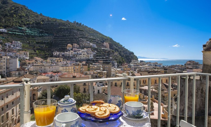 Diodora home is a quiet and elegant apartment located in the historic center of Maiori. The apartment is located exactly at the starting point of the "Sentiero dei Limoni", one of the most famous path in the Amalfi's Coast.It is located near the sea, in an ancient building, recently completely renovated, consisting of a kitchen, two spacious bedrooms and two bathrooms. The kitchen has a large window and is equipped with a microwave oven, a dishwasher, a fridge with freezer, a kettle, an Italian-style coffee-maker, a 4-burner hob, a table and 4 chairs. The master bedroom has a queen size bed, two bedside tables, a wardrobe, a desk, a balcony with a panoramic view and an en suite bathroom, in the bathroom there is a sink, a toilet and a shower cubicle. The other bedroom has a double sofa bed, a single bed, a desk, a wardrobe, a bedside table, a panoramic balcony, a small veranda and an en-suite bathroom. In the bathroom there is a toilet, a bidet, a sink, a washing machine and a shower cubicle. From the apartment you can enjoy a beautiful panorama of the coast and it is perfect both for a romantic holiday and for a family holiday. From Maiori all the places of major tourist interest in Campania are easily reachable (Pompeii excavations, Herculaneum excavations, temples of Paestum, Naples, Vesuvius, Royal Palace of Caserta). By bus or by ferry it is possible to reach all the magnificent towns of the Amalfi Coast, as well as the islands of Capri and Ischia to spend fantastic relaxing days, enjoying the view of breathtaking landscapes and the mild climate, tasting the culinary specialties and testing the kindness with which guests are welcomed by the local population.