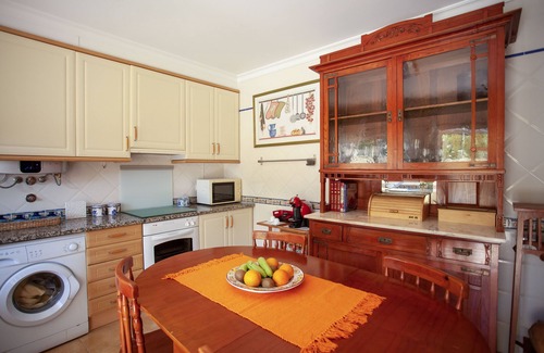 The townhouse has free public parking in the front of the property and offers 3 spacious bedrooms with double beds, big built-in wardrobes, televisions, AC`s and balconies with garden and village street views. The master bedroom includes an ensutite bathroom, everything is decorated with loving care by the portuguese owners. A real "casa portuguesa". All the bedrooms are located on the second floor while there is a very well eqipped, spacious kitchen, a large living room and a wonderful terrace on the ground floor. The terrace features an outdoor dining area with a BBQ and lounge chairs to relax in the sun.