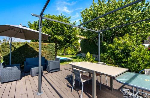 BathroomPrivate bathroom, Shower, Hairdryer, Free toiletries, TowelsMedia & TechnologyCable channels, Streaming service (like Netflix), TVGeneralAir conditioning, Private entrance, Ironing facilities, Smoke AlarmKitchenKitchen, Dishwasher, Coffee machine, Refrigerator, Electric kettle, Toaster, Oven, Stovetop, High chair, Microwave, Washing machine, KitchenwareLiving AreaFireplaceOutdoorsOutdoor furniture, Private pool, Barbecue, TerraceViewMountain view, Landmark viewBedroomChildrens' cribs, LinensEntertainment & Family ServicesBoard games/puzzlesPool and SpaPool towels |