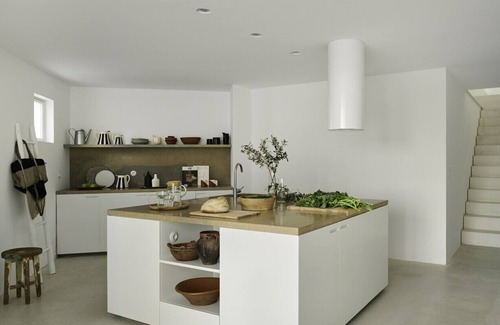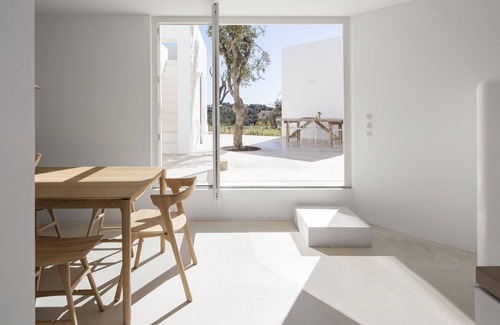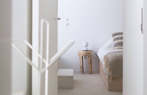 In the hilly hinterland of the Algarve, amidst hundreds of olives, almond and cork trees, Casa Domingos appears immaculately in white. Once an ancient ruin, it is today a gorgeous design villa created by Pedro Domingos, the same architect as its sister house Casa Sabados. Both houses are nestled in a large nature reserve at the end of a dirt road; in absolute tranquillity without cars passing by.
