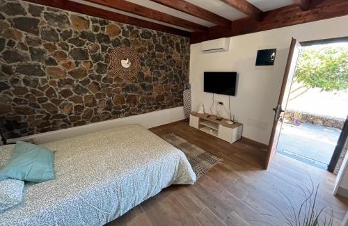 BathroomTowels, Private bathroom, Toilet paper, Hairdryer, Bathtub or shower, Towels/Sheets (extra fee), Shower, ToiletMedia & TechnologyTV, Flat-screen TVGeneralSuit press, Ironing facilities, Air conditioning, Trash cans, Private entrance, Iron, HeatingKitchenElectric kettle, Coffee machine, Stovetop, Refrigerator, Kitchenware, Microwave, Kitchen, Kitchenette, Toaster, Washing machine, OvenViewGarden view, Sea view, View, Pool viewBedroomWardrobe or closet, Childrens' cribsOutdoorsTerraceAccessibilityEntire unit located on ground floorBuilding CharacteristicsSemi-detachedRoom AmenitiesClothes rack, Socket near the bedPool and SpaPlunge Pool, Pool towels |