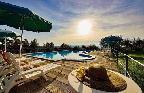 You will reach the swimming pool from the garden going down a route that includes approximately 30 stairway steps. The pool is 7 meters (23 feet) large by 14 meters (46 feet) long, from 1.20 meter (4 feet) to 1.80 meters (6 feet) deep. The area is equipped with sun umbrellas and sun loungers. From the swimming pool you will enjoy a bright view of the valley and of the greenery. You will share the pool with guests staying at 6 other apartments. The swimming pool is open from the beginning of May until the end of September.