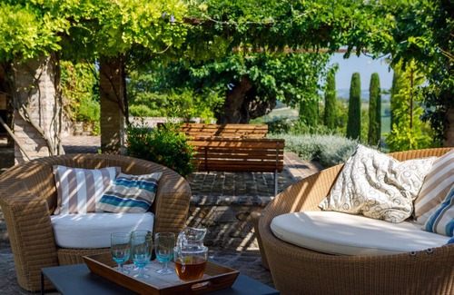 Please notice that photos are taken in spring, therefore flower blossoming, and the colours of the gardens' grass could be different at the moment of your arrival at the villa.