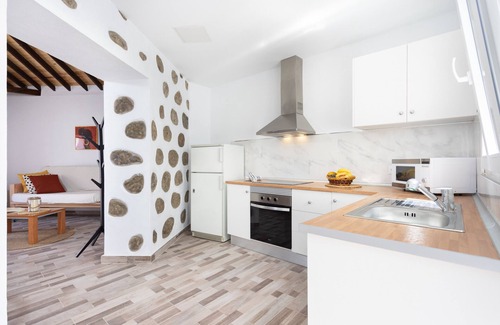 Fully renovated holiday home, maintaining the charm of classic Canarian construction in a unique environment. Mixing traditional with modern, it offers all the amenities, such as air conditioning, heating, 2 Smart TVs, fiber Wifi, and window screens in all rooms, for a comfortable and convenient stay. A highlight is the impressive solid wood ceiling and the terrace on the top floor of the house, equipped with sunbeds, an outdoor shower and dining area, with spectacular views of the natural monument of Roque Nublo. The house has a large bedroom with a 1.50 m double bed and a 50" Smart-TV, a living room with another 65" Smart-TV, a fully equipped kitchen with dining area, an outdoor breakfast terrace, and a spacious modern bathroom with shower.