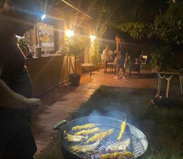 Food & DrinkTea/Coffee makerBathroomShampoo, Body soap, Toilet paper, Toilet, Hairdryer, Bathtub, Bathtub or shower, Towels, Private bathroomMedia & TechnologyTV, Flat-screen TVGeneralFan, Suit press, Air conditioning, Iron, Heating, Trash cans, Fire extinguisherKitchenCleaning products, Dining table, Refrigerator, Oven, Kitchen, Toaster, Washing machine, Kitchenette, Dishwasher, Coffee machine, Kitchenware, MicrowaveLiving AreaFireplace, Desk, Sofa, Dining areaViewView, Garden viewBedroomLinens, Childrens' cribs, Wardrobe or closetOutdoorsOutdoor dining area, Barbecue, TerraceRoom AmenitiesSocket near the bed, Clothes rack, Fold-up bed, Drying rack for clothingEntertainment & Family ServicesBoard games/puzzles |