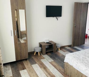 Casa Korina offers accommodations in Azuga, 9.3 miles from Stirbey Castle and 18 miles from Braşov Adventure Park. 8.6 miles from Peles Castle and 8.9 miles from George Enescu Memorial House, the property offers a garden and barbecue facilities. There's a terrace and guests can access free Wifi and free private parking. The units come with parquet floors and feature a fully equipped kitchen with a fridge, a dining area, a flat-screen TV with cable channels, and a private bathroom with shower and slippers. At the guest house, units have bed linen and towels. For guests with children, the guest house features outdoor play equipment. Ski storage space is available on-site and skiing can be enjoyed close to Casa Korina. Dino Parc is 18 miles from the accommodation, while Strada Sforii is 22 miles from the property. Bucharest Henri Coandă International Airport is 76 miles away.