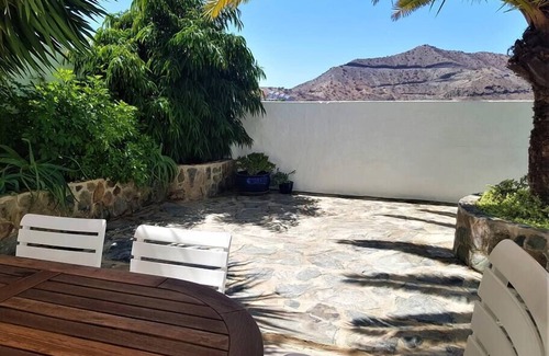 Lovely comfortably furnished house with large terrace in the immediate proximity of the beach at the popular holiday resort of Arguineguin. The accommodation is in a quiet location and has direct access from the street with free parking. The house has a spacious open living area and a kitchen equipped with every comfort, two bedrooms, one bathroom, another toilet and a large, private terrace with many tropical plants and wonderful sea views.