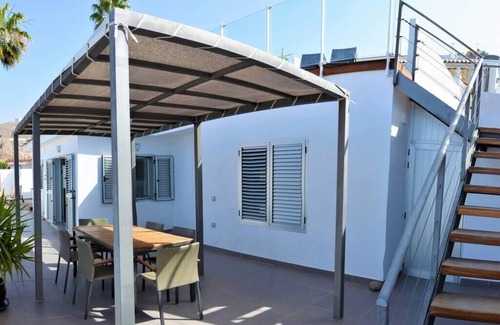 Lovely comfortably furnished house with large terraces in the immediate proximity of the beach at the popular holiday resort of Arguineguin. The accommodation is in a quiet location and has private parking. The house has a spacious open living area and a kitchen equipped with every comfort, two bedrooms, two bathrooms and a big, private terraces with wonderful sea views.
