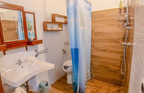 La camera "Queen" è una soluzione intima e accogliente per due persone, dotata di un letto matrimoniale e un bagno privato con doccia, oltre al cucinotto in comune.