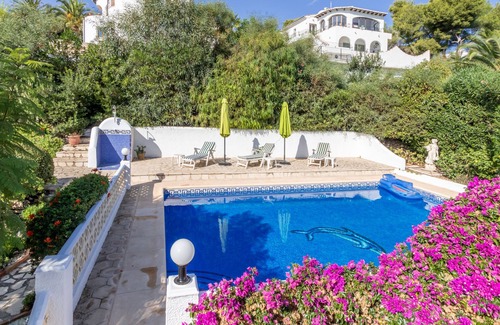 Family villa with air con and Fibre internet in El Portet, lovely pool and beautiful gardens. Casa Lavanda is all on one level (although accessed by steps) and is in a quiet setting close to El Portet beach.