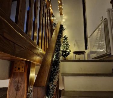 Food & DrinkTea/Coffee makerBathroomBidet, Hairdryer, Toilet, Private bathroom, Body soap, Free toiletries, Towels, Toilet paper, Shampoo, ShowerGeneralCarbon monoxide detector, Air conditioning, Fire extinguisher, Ironing facilities, Private entrance, Key access, Heating, Fan, Safe, Smoke Alarm, Iron, Trash cansMedia & TechnologyFlat-screen TV, TV, Mobile hotspot deviceKitchenCleaning products, Dryer, Stovetop, Kitchenware, Electric kettle, Oven, Coffee machine, Dining table, Kitchen, Refrigerator, Kitchenette, Washing machineOutdoorsBalconyLiving AreaDining area, Sitting area, SofaBedroomLinens, Childrens' cribs, Wardrobe or closetAccessibilityUpper floors accessible by stairs only, Hearing accessibleBuilding CharacteristicsSemi-detached, DetachedRoom AmenitiesSofa bed, Drying rack for clothing, Hypoallergenic pillow, Clothes rack, Socket near the bed, Non-feather pillowEntertainment & Family ServicesBoard games/puzzles, Baby safety gatesPhysical distancingSingle-room AC for guest accommodationCleanliness & disinfectionHand sanitizer |