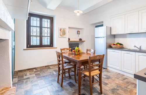 The garden and surrounding land extend for approximately 2000 sq m, laid out with lawns, fruit trees, ornamental grasses and flowerbeds. The poolside area includes a shaded gazebo with dining furniture, while the main portico is equipped with a barbecue and seating for outdoor meals. An elm tree shades the small private chapel, and Pampas grass flanks the gravel path leading to the pool. A parking area is located at the entrance to the property.Please notice that photos are taken in spring, therefore flower blossoming, and the colours of the gardens' grass could be different at the moment of your arrival at the villa.