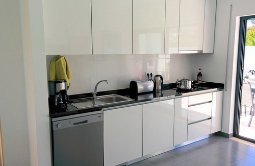 The modern kitchen is equipped with fridge, freezer, oven, microwave, coffee maker, kettle, blender, extensive cookware, glasses for water, wine, champagne ... There is a dishwasher, a built-in washer / dryer, drying rack and washing thread; iron + ironing board; extensive cleaning supplies and central vacuum cleaner.
