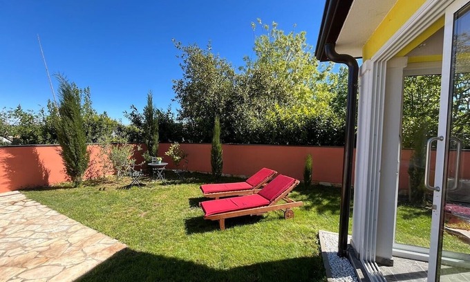 In the quiet village of Radini, not far from Novigrad, Umag and the sea, there is a comfortable holiday home ideal for families or friends. The house can accommodate up to 6 people and is arranged over the ground floor and first floor. On the ground floor there is a spacious living room of 20 m2, a small but practical kitchen, one bedroom and a bathroom with a shower and a washing machine. On the first floor there are two more bedrooms and an additional bathroom. A spacious enclosed terrace, ideal for socializing, provides a special charm, while the landscaped garden invites you to relax. Private parking is also available to guests. Thanks to its quiet location and proximity to the sea (7 km), this house offers the perfect combination of peace, comfort and practicality.