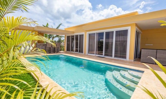 Gated community with 24hr security guest friendly. The villa is a 2 bedroom, 2.5 bathroom. Each room has a king size bed and 40 inch TV with their own bathroom on opposite sides of villa. Living room has a 50 inch TV and Bluetooth speaker. Both bedrooms have sliding door that opens to your own private pool area. Pool has a seated lounge area to relax and an outside bar and grill. Miniature golf course, restaurant/bar and store on premise. Free shuttle bus to town included with stay. Come and enjoy your stay at Casa Linda, you will not regret it.