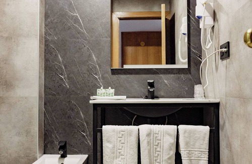 Bathrooms include bidets and complimentary toiletries. Business-friendly amenities include desks and phones.