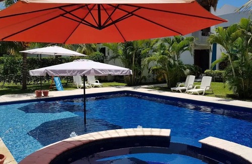 The condo has shared social areas such as children's and adults ' water park, jacuzzi, bathroom area with showers, beach ball ball ball and direct access to the beach and sea, gardens and ranches and parking for 30 additional vehicles and private garita.