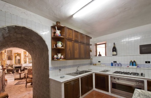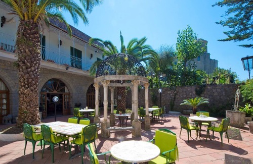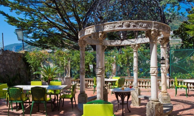 Near the luxurious area of Caruso Hotel, the villa allows entry through a lovely little gate which takes the guest directly to the upper floor, in a nice living room that leads to the entrances of the four double bedrooms: two double bedrooms, on the left side, which share a bathroom equipped with shower, while the other two are on the right side, sharing a common bathroom with tub. From the upper floor, a beautiful and characteristic stair-case takes to the big open space, positioning itself at the center of this and allowing the hall to be imaginarily divided in two: on the right side of the open space there is the access to the lounges, while on the left, the guest will find a nice dining room, which is directly connected to the beautiful fully-equipped kitchen with all the comfort, plus a storeroom and a useful guest bathroom. Furthermore, the big hall on the lower floor turns out to be surrounded by three stone arches that lead outdoors. The whole villa is characterized by the attention to details and for its warm colors, reminiscent of the delicious French parlors: the fine furniture together with the search for a classic style, are the ones that make this structure a real jewel!