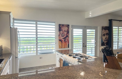 Welcome to Casa Mar Vista! This spacious home hosts 3 bedrooms, 2 complete bathrooms, fully stocked kitchen with a half kitchen downstairs- fully equipped with refrigerator, gas stove with oven, dishwasher, microwaves, blenders, toasters, and utensils. There are big screen smart TV's and wireless high-speed internet. This property boasts northward tropical ocean views of the Caribbean that are second to none! Lounge or BBQ from the wrap around lanai, taking in the tropics, surrounded by Ylang-Ylang and other tropical flora. Make your way to the private pool, to lounge, refresh, and take in the Caribbean View. This house is totally private and equidistant from northside and southside beaches. Casa Mar Vista has ac units in every room of the home, fluffy beds, has its own private driveway entrance with electronic gated access to the property, and access to full laundry (washer and dryer). We provide everything you'll need for a day at the beach- chairs, coolers, umbrellas, and towels. Casa Mar Vista is located in the scenic community of Los Chivos, centrally located in the hills of Vieques. A quick 8-to-10-minute drive into town for groceries or a bite to eat. And in less time to begin exploring the beaches of Vieques!