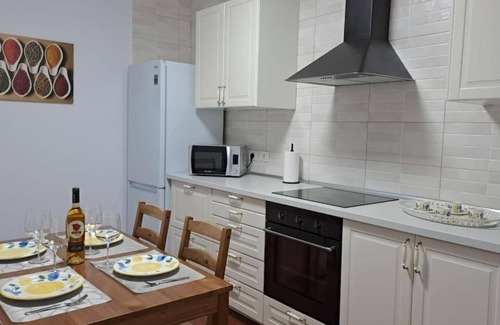 Casa Mar y Lava with capacity for 4 people consists of two floors, the entrance is accessed through a terrace where you can enjoy a pleasant breakfast or spectacular wine with your family or partner. Inside there is a spacious and comfortable living room with a 65" plasma TV, Wi-Fi, a fully equipped kitchen with all the necessary utensils, a bathroom and a small patio with a laundry room. On the second floor, a bathroom, a spacious room with a double bed and a room with two single beds to which you can add a crib park Finally, the upper floor, with two loungers where you can sunbathe, read a book and enjoy the wonderful landscape of contrasts between sea and lava.