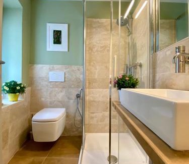 BathroomHairdryer, Shower, Towels, Toilet paper, Toilet, ShampooMedia & TechnologyStreaming service (like Netflix), TV, Flat-screen TVGeneralTile/Marble floor, Carbon monoxide detector, Ironing facilities, Air conditioning, Smoke Alarm, Heating, Private entrance, Hardwood or parquet floors, Fire extinguisher, Trash cans, IronKitchenWashing machine, Kitchenware, Cleaning products, Kitchen, KitchenetteOutdoorsBalcony, TerraceLiving AreaSitting area, SofaBedroomExtra long beds (> 6.5 ft), Childrens' cribs, LinensViewMountain view, City view, Quiet street view, View, Inner courtyard viewAccessibilityUpper floors accessible by stairs onlyBuilding CharacteristicsDetachedRoom AmenitiesFeather pillow, Drying rack for clothing, Socket near the bed, Non-feather pillowPhysical distancingSingle-room AC for guest accommodation |