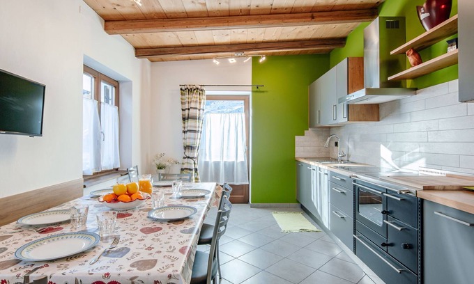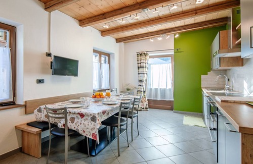 "Casa Marta", 3-room apartment 80 m2 on 3 levels on 1st floor. Object suitable for 6 adults. Spacious, comfortable and cosy furnishings: entrance hall. Living room with Scandinavian wood stove (only for decoration), TV (flat screen). 1 room with 2 beds. Shower/bidet/WC. Heating. Heating available only from 01.12. to 01.05. Upper floor: kitchen (oven, dishwasher, 4 ceramic glass hob hotplates, microwave) with dining table, TV (flat screen). Exit to the balcony. 2nd upper floor: 1 double bedroom. Exit to the balcony. 1 room with 1 x 2 bunk beds. Exit to the balcony. Shower/bidet/WC. Very beautiful view of the mountains. Facilities: washing machine, hair dryer. Internet (WiFi). Parking (1 car). Please note: suitable for families. Non-smoking house. Maximum 1 pet/ dog allowed. Private entrance, fire extinguisher, no lift. IT022039C2LAP36HIH
