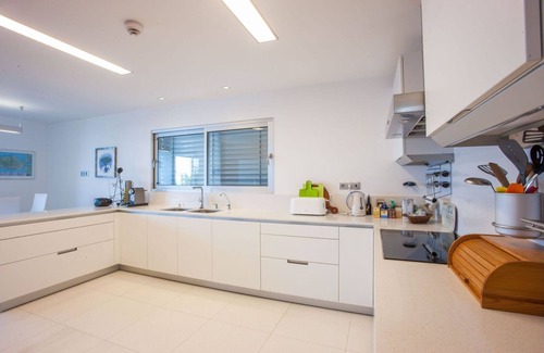 The extensive terrace with comfortable, cushioned seating provides access to the pool and grill area, and is surrounded by palm trees and furnished with deckchairs and parasols. There is an outdoor dining space on the terrace, where you can dine and have a drink. The well-maintained lounge area by the infinity pool will, undoubtedly, be your favorite spot, where you can simply enjoy the breathtaking view, or swim in a pool that “merges” with the sea. The pool can be heated with an added cost. Please inform us in advance if you want this extra service.