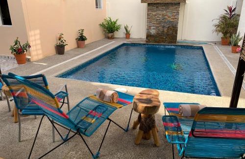 Featuring a garden, Casa Maty San Pancho features accommodations in San Francisco. This property offers access to a balcony, free private parking, and free Wifi. The vacation home offers an outdoor swimming pool and a 24-hour front desk. Offering a terrace and garden views, the spacious vacation home includes 2 bedrooms, a living room, flat-screen TV, an equipped kitchen, and 2 bathrooms with a shower. This vacation home also features a patio that doubles up as an outdoor dining area. The accommodation is allergy-free. San Pancho Beach is a 5-minute walk from the vacation home, while Aquaventuras Park is 22 miles from the property. Lic. Gustavo Diaz Ordaz Airport is 24 miles away.