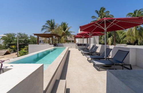 Located in Brisas de Zicatela, a 2-minute walk from Zicatela Beach, Casa Mava provides accommodations with an outdoor swimming pool, free private parking, a fitness center and a garden. Featuring a shared lounge, the 4-star hotel has air-conditioned rooms with free WiFi, each with a private bathroom. The hotel has a terrace and a 24-hour front desk. Every room is equipped with an electric tea pot, while selected rooms have a balcony and others also provide guests with pool views. Puerto Escondido International Airport is 3.7 miles away.